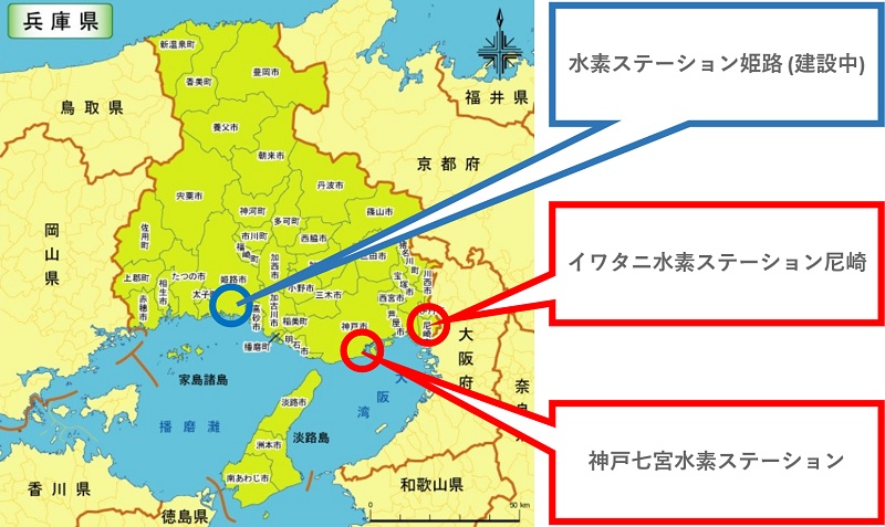 姫路市に新設された水素ステーションは、ガス専門商社の岩谷産業と、日本水素ステーションネットワーク合同会社(JHyM)が事業者となり、整備を進めました。